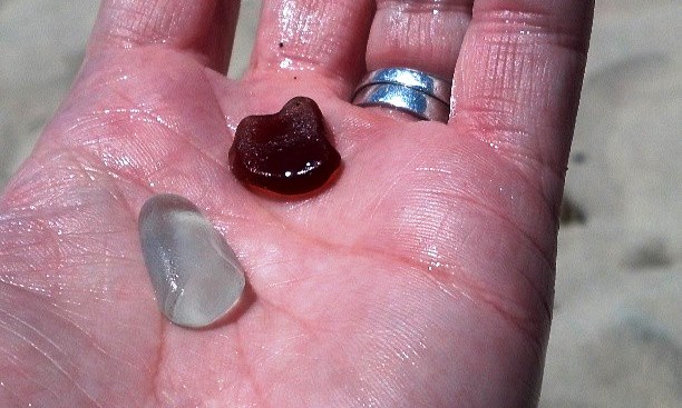 We have rules of what is a “keeper” and what isn’t. Basically, if the glass can draw blood, it doesn’t count. We envy the lucky picker who finds the beautiful cobalt piece or the lovely mint greens and soft blues.