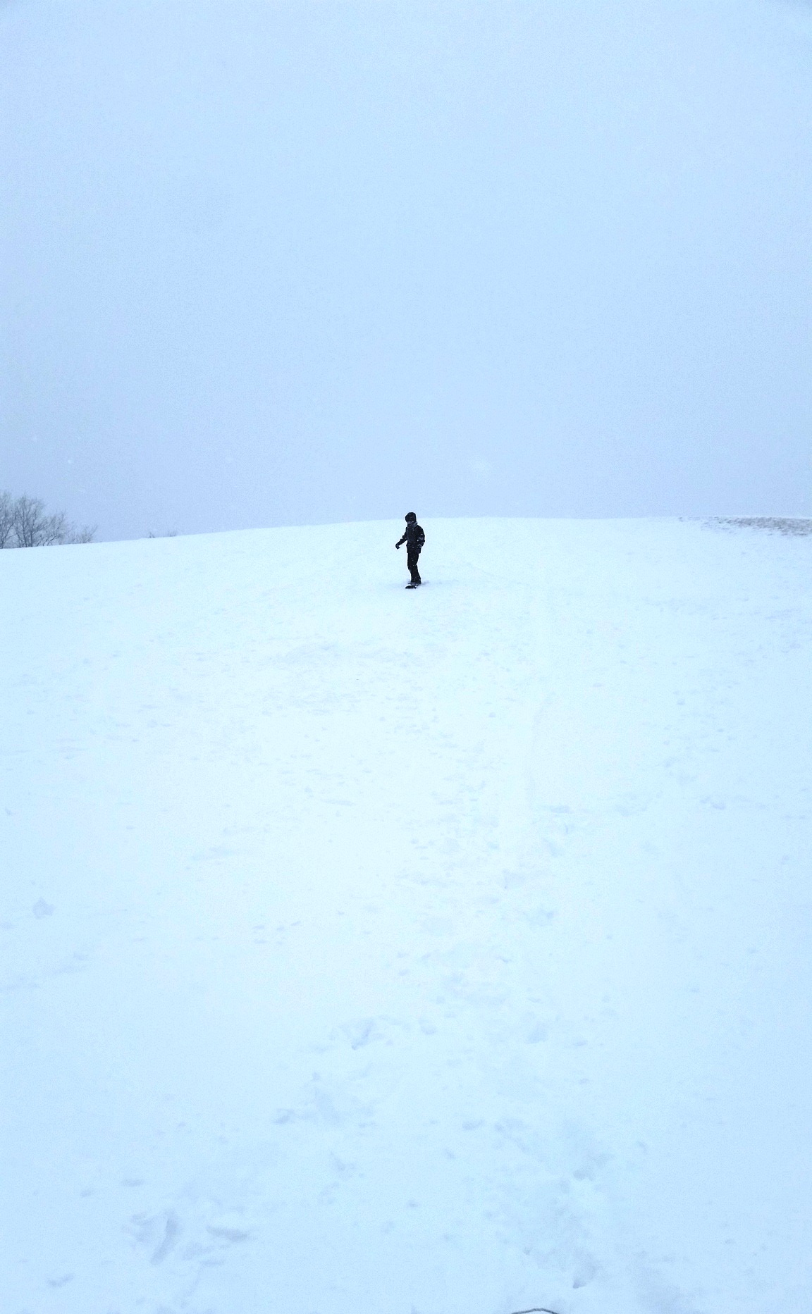 At about the halfway point we paused to catch our breath and looked at each other. The hill was off in the gray distance, and we could hardly hold our gaze toward it with the wind slapping at our eyes. Before we set out, we had agreed that if either of us wanted to turn back, that would be just fine. No pressure. But now I looked at my son and said, “I don’t know about you, but I didn’t come this far not to go down that hill at least once.”